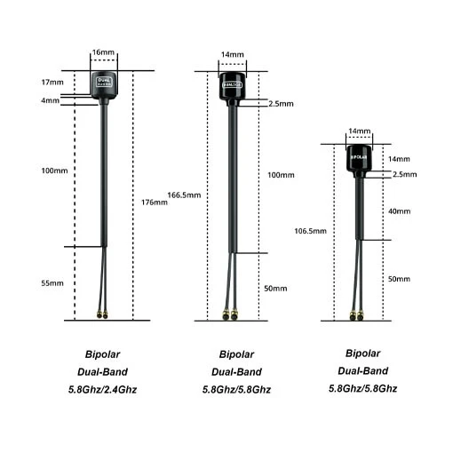 Cette antenne est disponible en plusieurs versions : 5,8 GHz (90 mm ou 150 mm), 2,4/5,8 GHz (155 mm). À vous de choisir !