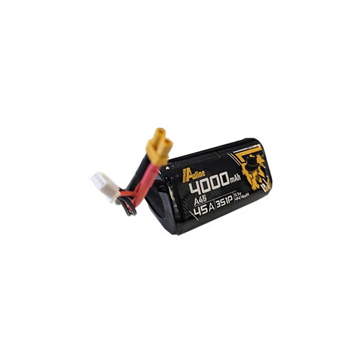Cette batterie Li-ion de Auline sera parfaite pour vos prochains vols. De dimensions de 7,7 x 4,1 x 3,9 cm avec un poids de seulement de 204 g, cette Li-ion possède une capacité de 4 000 mAh et un taux de charge de 0,5C. Elle dispose d’une tension de 3S (4,2 V) grâce à ses trois accus 21700. Cette batterie Auline est de plus dotée d’un connecteur XT30 pour faciliter son branchement.