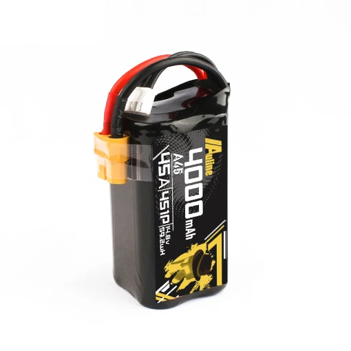 Cette batterie Li-ion Auline est parfaite pour accompagner vos sorties FPV. Elle dispose de quatre 21700 qui offrent une tension de 4S (14.8 V). Cette batterie est dotée d’une capacité de 4000mAh, d’un taux de charge continu de 1C et d’un courant de décharge de 45A. Elle pèse environ 274 g et possède un connecteur XT60.