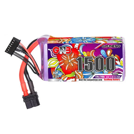 La batterie LiHV GaoNeng GNB assurera une énergie puissante à votre quad FPV. De dimensions de 38 x 38 x 79 mm avec un poids de 218 g, cette LiHV GaoNeng GNB dispose d’une capacité de 1 500 mAh et d’une tension de 6S. Elle comporte aussi un taux de charge de 1 à 5C et un taux de décharge de 120C et de 240C en pic. Cette batterie LiHV intègre de plus un connecteur XT60 pour faciliter son branchement.