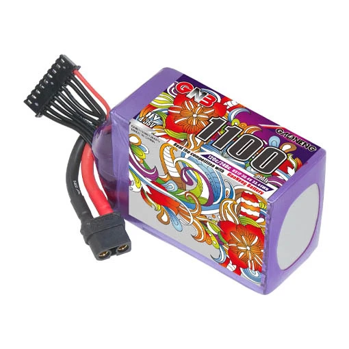 Optez pour cette batterie LiHV pour vos prochains vols ! De dimensions de 50 x 35 x 77 mm avec un poids de 227 g, cette LiHV GaoNeng GNB dispose d’une tension de 8S et d’une capacité de 1 100 mAh. Elle comprend un taux de charge de 1 à 5C et un taux de décharge continu de 120C et 240C en rafale. Cette batterie GaoNeng GNB possède un connecteur XT60.