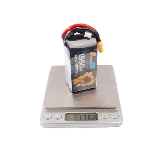 La batterie LiPo Auline de la série EX vous apportera l’énergie nécessaire pour votre quad FPV. De dimensions de 69 x 32 x 38 mm avec un poids de 176,6 g, cette LiPo possède un connecteur X60 pour faciliter son branchement. Elle comprend aussi une capacité de 1 550 mAh, une tension de 4S et un taux de décharge de 120C.