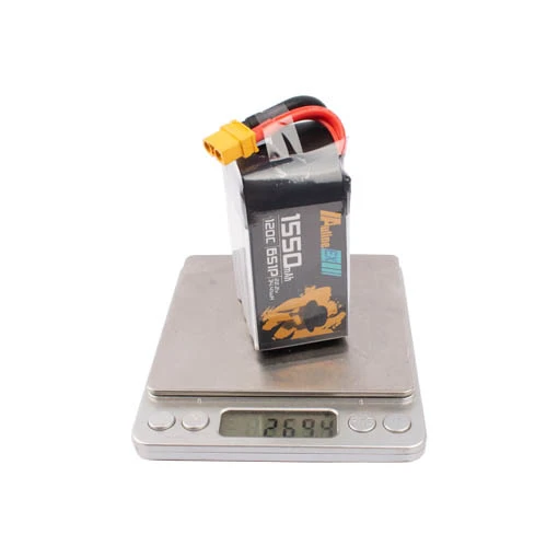 Cette batterie LiPo Auline de la série EX est idéale pour les vols freestyle et racing. Munie d’un connecteur XT60, cette batterie Auline de 269, 4 g dispose d’une capacité de 1 550 mAh, d’une tension de 6S et d’un taux de décharge de 120C.