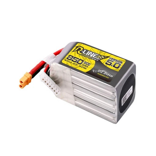 Cette batterie Tattu appartient à la série R-Line version 5.0. Elle est l’atout parfait pour un vol puissant, réactif et fiable grâce à sa technologie Al Boehmite. La batterie dispose d’une tension de 6S, d’un taux de décharge de 150C et d’une capacité de 850 mAh. Elle est dotée d’un connecteur XT30 et pèse seulement et environ 145 g.