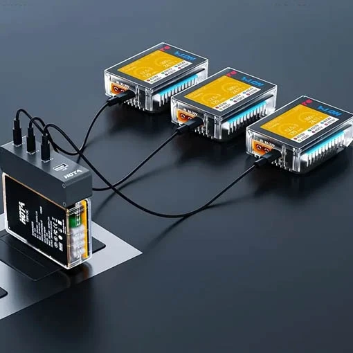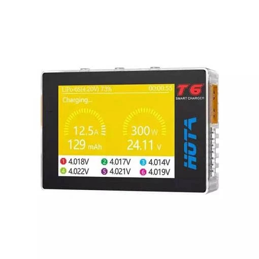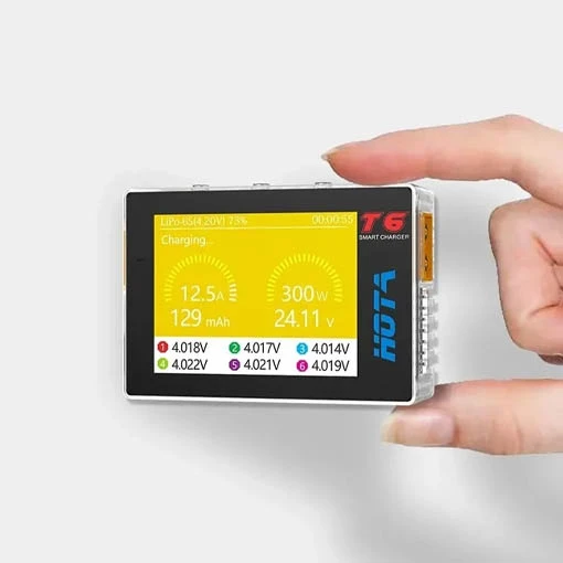 Ce chargeur HOTA T6 comprend de plus un Ă©cran IPS LCD de 2,4 pouces, assurant un affichage clair de l’Ă©tat de vos batteries et de leur charge. Il intègre Ă©galement un système de protection complet contre les courts-circuits, les surchauffes, la sous-tension, le sur-ampĂ©rage et bien plus encore ! Ce chargeur bĂ©nĂ©ficie aussi d’un ventilateur innovant afin de dissiper efficacement la chaleur pour une meilleure durabilitĂ©.