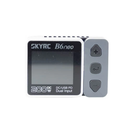 Ce chargeur SkyRC B6 Neo est un chargeur double léger et compact. De dimensions de 70 x 50 x 32 mm avec un poids de seulement 82 g, ce chargeur vous permettra de charger simultanément 2 batteries grâce aux connecteurs XT60 et aux prises d’équilibrage. Il est compatible avec les batteries LiPo, LiFe, Li-ion, LiVH de 1 à 6S, NiMH, NiCd de 1 à 15S et PB de 3S et 6S. Il a une puissance maximum de 200 W avec un courant de charge de 10A. Il peut délivrer en charge rapide jusqu’à 80 W via son connecteur USB-C. Ce chargeur SkyRC dispose d’un ventilateur de refroidissement et d’une protection contre les courts-circuits, les surcharges et la polarité inversée. Il assure ainsi une sécurité optimale pour vos batteries.