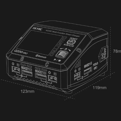 Ce chargeur peut être alimenté par une source de 100 à 240V ou 10 à 30V. Le Q200 Neo supporte jusqu’à 400W max. Il vous permettra également d’accélérer le processus d’équilibrage entre les cellules de votre batterie avec un courant d’équilibrage de 800 mA par cellule. Ce chargeur dispose aussi d’un port PD 3.0 de 20W. Vous pourrez ainsi charger votre smartphone, tablette ou encore ordinateur portable lors de vos déplacements.