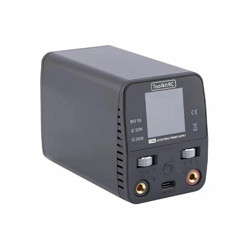 Le chargeur ToolKitRCP200 V2 comprend une double entrée AC/DC avec un convertisseur GaN de 100 W, assurant une sortie principale réglable entre 1 et 30 V et 1 et 10 A. Il bénéficie aussi d’une sortie USB-C charge rapide de 65 W. De dimensions de 110 x 63 x 78 mm avec un poids de seulement 425 g, ce chargeur vous permettra de charger vos batteries où que vous alliez. En effet, il peut être alimenté par une source de 100 à 240 V ou 7 à 28 V. Il prend de plus charge les protocoles PD3.0, PD2.0, PPS, QC4, QC3.0, QC2.0, QFC, FCP, SCP, PE2.0, PE1.1, SFCP et VOOC. Grâce à son connecteur USB-C, vous pourrez également charger votre ordinateur potable, tablette ou smartphone.