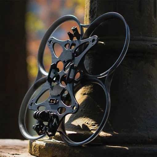 Ce châssis Pavo 35 est un Cinewhoop 3,5″ BetaFPV de type pusher très léger et réactif. Sa structure en alliage aluminium CNC 7075 vous garantira de belles performances de vol avec des poussées puissantes. Avec un empattement de 148 mm, cette frame est de plus compatible avec la plupart des VTx analogiques et numériques grâce à ses trous de montage de 25,5 x 25,5 mm M1.6 et 20 x 20 mm M2. Son support VTx a d’ailleurs été conçu pour réduire efficacement les vibrations pour des vidéos sans effet Jello.