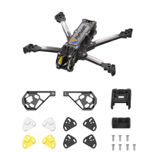 Ce châssis possède des bras détachables pour faciliter l’entretien de votre drone. Il est également doté d’un connecteur XT60 à l’arrière, évitant les dommages éventuels causés par les hélices ou les chocs. Il est fourni avec 2 supports d’antenne en TPU avec ou sans support GPS. Vous pourrez également ajouter une caméra d’action de type GoPro. Ce châssis présente des trous de montage stack en 20 x 20 mm et 30,5 x 30,5 (M3) et des trous de montage VTx en 20 x 20 mm et 25,5 x 25,5 mm (M2).