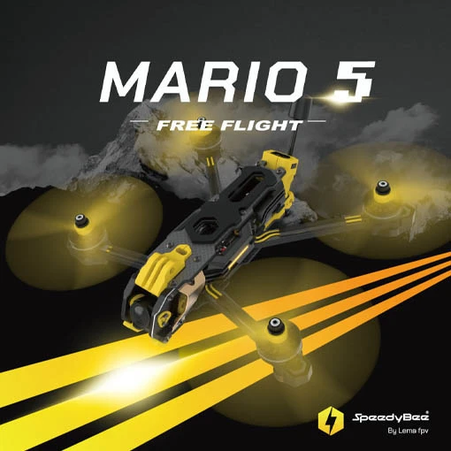 Le châssis SpeedyBee Mario 5 DC est très polyvalent. Il convient pour le freestyle, racing, cinematic ou long range. Avec un empattement de 227 mm et un poids de 170 g, cette frame dispose d’une structure en alliage aluminium à haute résistance. Sa conception bénéficie d’un centre de gravité plus bas que les frames standard pour des images plus stables sans effet jello. Ce châssis SpeedyBee assure de plus des prises de vue ultra-grand-angles dégagées et dispose d’une fixation GoPro pour des prises de vue saisissantes. Il a été conçu pour accueillir le VTx DJI O4 Air Unit Pro.