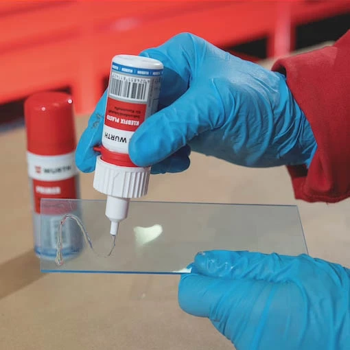 La colle instantanée Wurth Klebfix Plasto vous permettra de fixer efficacement et rapidement les plastiques difficiles à coller. Idéale pour vos montages, cette colle cyanoacrylate est dotée d’un embout de précision pour un travail propre. Cette colle Wurth convient pour le collage de l’ABS, PVC, PMA, PA, PET, PI, EPDM, POM, TPE, TPO, PE, PP, PTFE, élastomère chargé, caoutchouc naturel et au silicone. Cette colle à viscosité moyenne assurera une meilleure résistance aux chocs, aux forces de décollement, aux changements de température et à l’humidité.