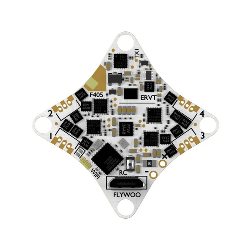 Le contrôleur de vol AIO Flywoo Goku F405 ERVT 5A réunit une carte de vol F405, un ESC 4en1 BLS 5A, un récepteur ELRS 2,4 GHz et un VTx analogique. Cette carte de vol comprend un processeur STM32F405BGA, un gyroscope ICM42688P de 4 kHz, un OSD AT7456E, 6 UARTS et un BEC 5V (2 A). Elle prend en charge le firmware BLHeli_S Bluejay et peut supporter un ampérage continu de 5 A et de 8 en rafale. Son VTx analogique bénéficie du protocole IRC Tramp et de la fréquence 5,8 GHz avec 40 canaux au total. Ce VTx permet une puissance de transmission de 25 à 400 mW jusqu’à 1,5 km de distance. Il est doté d’un commutateur électronique et garantit une latence vidéo inférieure à 50 ms.
