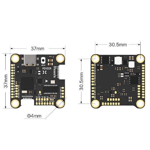 Cette FC H7 peut être alimentée par une batterie LiPo de 4 à 8S. Plusieurs trous de montage de 30,5 x 30,5 mm sont présents sur ce modèle FC pour l’installer facilement sur votre châssis. Cette carte de vol dispose également de connecteurs USB Type-C et DJI. Puissante et compacte, elle peut supporter jusqu’à 8 moteurs.