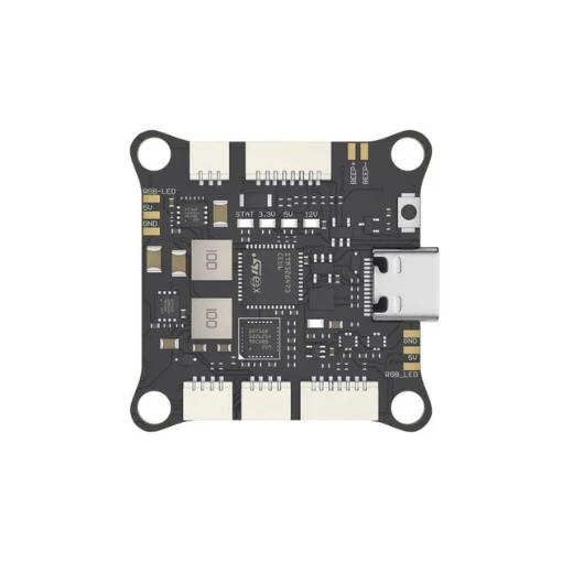 Ce contrôleur de vol supporte une alimentation LiPo 2 à 6S et dispose d’un double BEC 9V et 5V, pour une alimentation fiable et stable. Son port USB Type-C facilite la connexion pour les mises à jour et réglages, tandis que son format standard avec des trous de montage en 30,5 x 30,5 mm permet une intégration facile sur une large gamme de châssis.