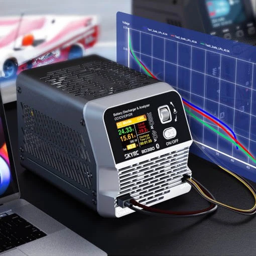 De dimensions de 159,69 x 121,6 x 110 mm avec un poids de 1 kg 100 g, ce déchargeur SkyRC dispose aussi d’une protection contre la surchauffe pour plus de sécurité. Il intègre de plus un système de dissipation thermique doté d’un ventilateur. Ce déchargeur 2en1 SkyRC BD380 est par ailleurs compatible avec les applications mobiles iOS et Android via le Bluetooth.