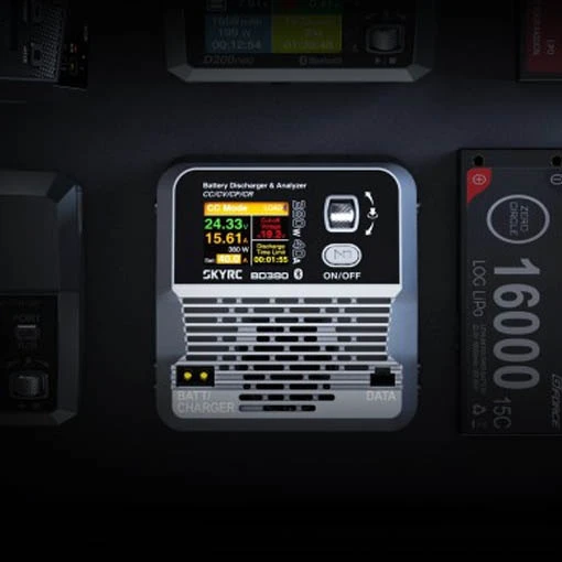 Ce déchargeur SkyRC BD380 vous permettra de décharger vos batteries LiPo via son connecteur XT60. Il prend en charge les batteries de 1 à 6S et dispose d’une capacité de décharge de 380 W max. Ce déchargeur pourra également servir de testeur de batterie. Vous pourrez mesurer l’état de vos batteries, de leur capacité de décharge et du courant de décharge via son écran LCD. Vous pourrez aussi comparer leurs performances pour de meilleures efficacités.
