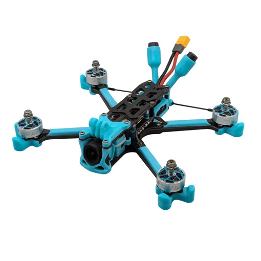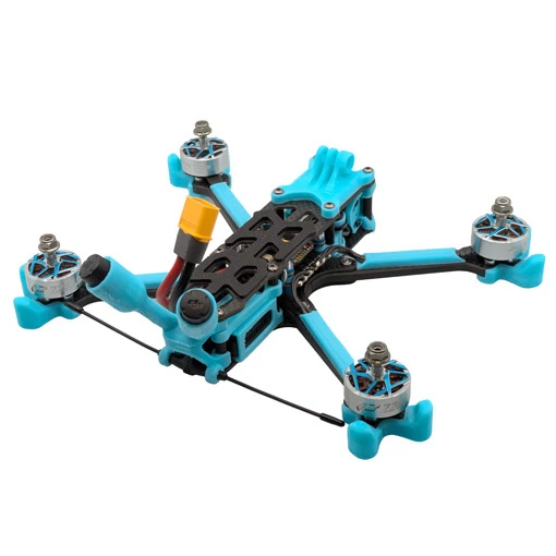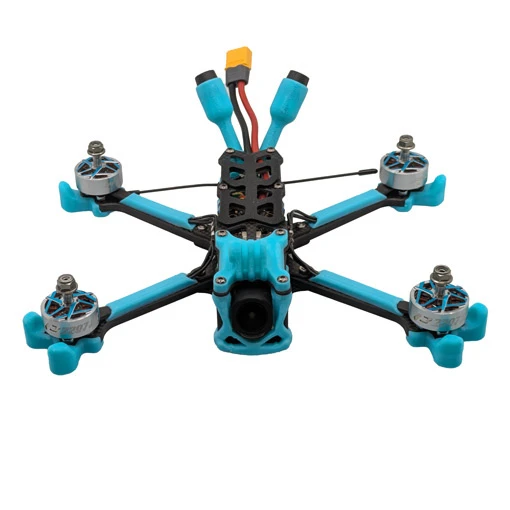 Avec un empattement de 224 mm, le FlexOne » V3 comprend une stack 4en1 Hobbywing Xrotor Micro F722 65A, des moteurs T-Motor Pacer P2207 V2-3 de 1750 Kv couplés à des hélices Juicy J40 tripales 5140 shaft M5. Ce BNF possède un récepteur TBS Crossfire Nano Rx (SE) avec une antenne TBS Immortal T V2 pour une liaison optimale, même à longue distance. Il profite également d’un buzzer autonome Finder 2 Vifly pour plus de sécurité. Pour l’alimenter, utilisez une LiPo de 6S (non fournie) via son connecteur XT60.