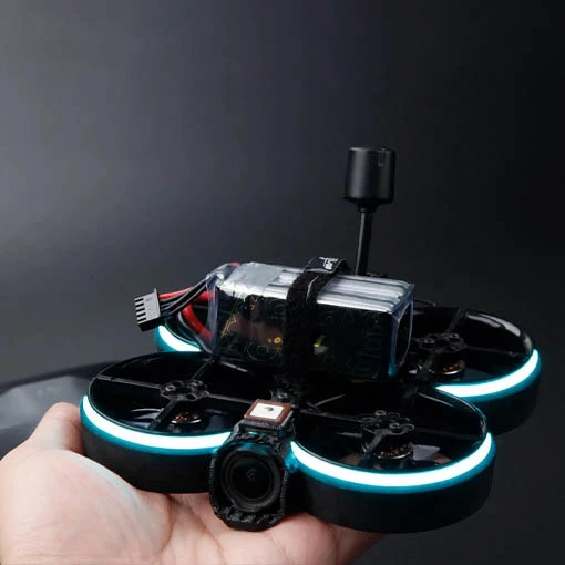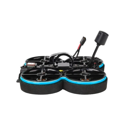 Le CineRace20 V2 est Ă©quipĂ© d’une carte AIO GN405S 20A, de moteurs Nin V2 1203 Pro 4850Kv couplĂ©s aux hĂ©lices Gemfan pentapales D51-5. Il dispose d’un buzzer et d’un GPS GM10 Nano V3 pour des vols plus sereins. Son design innovant permettra d’optimiser les poussĂ©es du drone en utilisant les courants d’air pour plus d’efficacitĂ©. Aussi flexible qu’un drone de course et aussi stable qu’un CineWhoop, ce drone 2″ affiche un style unique avec ses LED nĂ©ons autour de la protection d’hĂ©lices. Vous pourrez changer la couleur selon vos envies grâce une soudure. Alimentez votre drone avec une LiPo de 4S via le connecteur XT30 inclus.