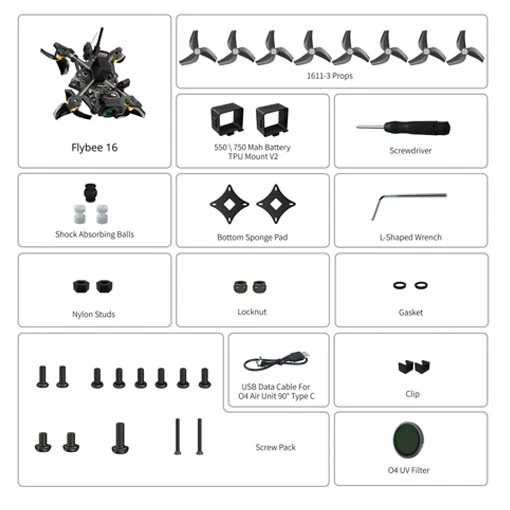 Le Flywoo Flybee 16 est très petit, ultra-compact et léger (seulement 45, 7 g !). Ce micro drone est capable de relever de nombreux défis en vol indoor et outdoor et peut se faufiler dans des endroits complexes et étroits. Ce quad 1,6″ est particulièrement idéal pour les télépilotes FPV, amateurs et professionnels de l’image. Équipé du VTx DJI O4 Air Unit, le Flybee 16 offre un retour vidéo fluide en 1 080 100 ips avec une faible latence de 20 ms et une portée de 6 km (CE). Ce drone vous permettra aussi de créer des vidéos en 4K 60 ips et de profiter du profil de couleurs D-Log M 10 bits pour un rendu inédit. Son cam plate absorbe de plus les chocs et vous évite l’effet Jello.