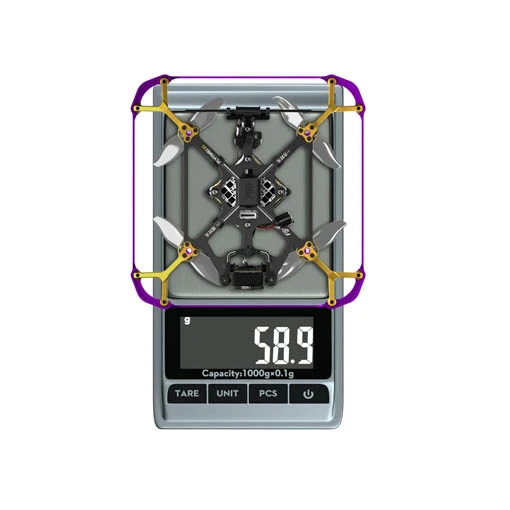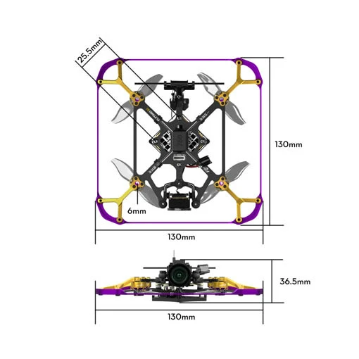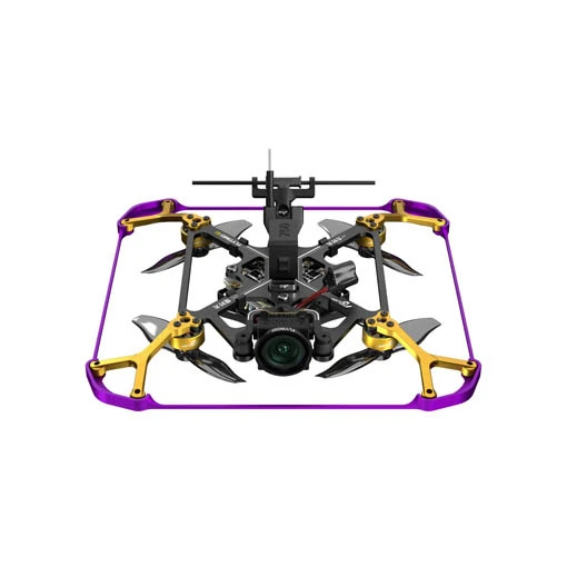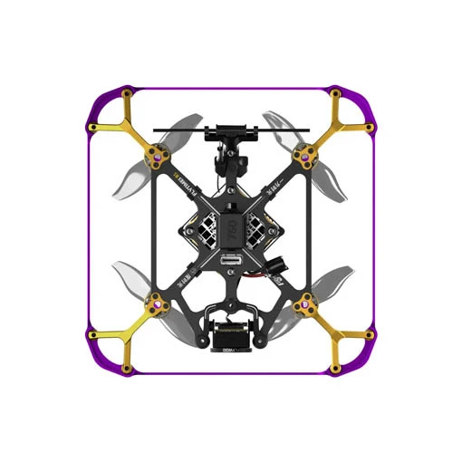 Le Flytimes 85 est le fruit d’une collaboration entre Flywoo et un studio de photographie chinois. Ce drone polyvalent est particulièrement idéal pour les vols indoor et cinematic. Sa conception en alliage aluminium en forme de Y est renforcée par des TPU pour une protection complète. Avec un poids de seulement 58,9 g, le Flytimes 85 profite aussi d’une configuration puissante grâce à son AIO GOKU F405 HD 2S ELRS V2, ses moteurs de type pusher ROBO 1003 de 14 800Kv couplés aux hélices bipales 2015. Sa puissance de poussée inversée améliore aussi la stabilité et l’endurance de votre cinewhoop.