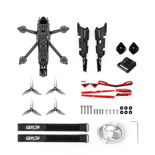 Le DoMain 3.6 HD dispose d’une carte de vol Taker F722 SE, d’un ESC 4en1 E55A, de moteurs SPEEDX2 2105.5 de 2 650 Kv couplés à des hélices Gemfan tripales 3630. Ce drone BNF GEPRC intègre de plus un GPS GEP-M10 disposant du mode Rescue pour plus de sécurité. Vous pourrez l’alimenter avec une batterie LiPo de 6S (non fournie). Ce quad GEPRC est livré avec deux panneaux latéraux personnalisables. Plusieurs motifs sont inclus pour affirmer votre style !