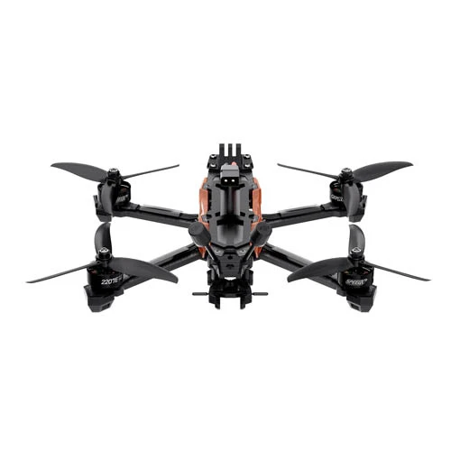 Ce quad BNF à géométrie DeadCat dispose d’une structure durable et robuste en fibre de carbone avec un cam plate en aluminium CNC et silicone anti-vibration. Il comprend de plus une configuration puissante et fiable, composée d’une carte de vol GEP F722 V2 ICM42688-P, d’un ESC 4en1 TAKER H60 BLS 60A, de moteurs GEPRC SPEEDX2 2207E de 1 960Kv couplés à des hélices Gemfan tripales 5136. Il possède de plus un module GPS GEP-M10 pour plus de sécurité. Pour l’alimenter, utilisez une LiPo de 6S (non fournie) via son connecteur XT60.