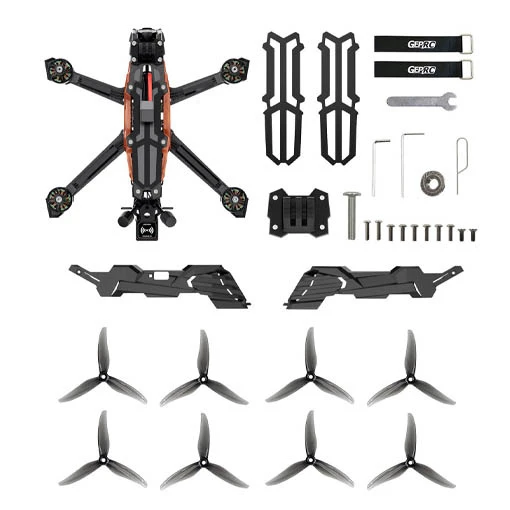 Le Vapor-X5 comprend une carte de vol GEPRC F722 HD V2, un ESC 4en1 TAKER H60 BLS 60A, des moteurs GEPRC SPEEDX2 2207E de 1960 Kv couplés à des hélices Gemfan tripales Gemfan 5136. Cette configuration lui confère des performances de vol puissantes. Sa conception vous permettra aussi de retirer et de remonter facilement ses bras. Il possède un GPS GEP-M10 pour un positionnement précis. Pour l’alimenter, utilisez une LiPo de 6S (non fournie) via connecteur XT60.