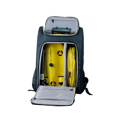 Il est fourni avec une carte SD de 64Go pour enregistrer vos images. Illuminez les fonds marins à l’aide des 2 phares LED de 1200 lumens. Avec une autonomie de 4 heures vous pourrez mener à bien votre mission. Les 2 batteries internes de 4800mAh sont très puissantes. La version FlashPack se compose d’accessoires complémentaires pour améliorer votre setup. Choisissez la taille du câble : 100m ou 200m