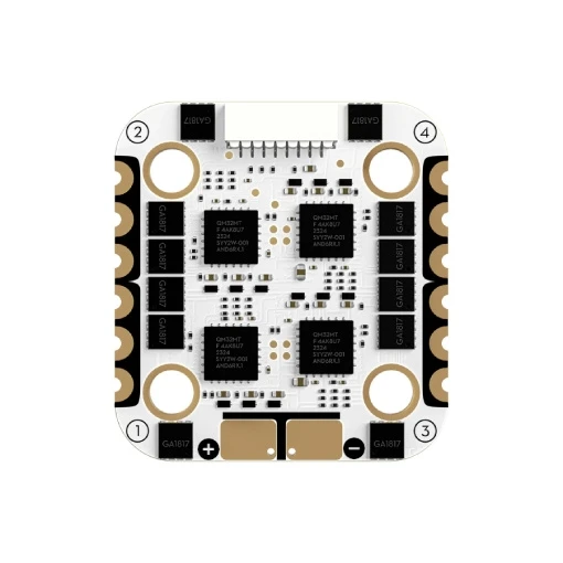 L’ESC 4en1 Flywoo Goku G45M 45A vous assure puissance et performance pour votre setup FPV. Léger (6,4 g) et compact, il s’installe en toute facilité sur votre châssis grâce à ses trous de montage en 20 x 20 mm. Cet ESC supporte un ampérage continu de 45A et jusqu’à 50A en pic de 10 secondes environ. Il est doté d’un firmware BLHeli_32 et évolue sous les protocoles DShot150/300/600/1200, OneShot42/123 et MultiShot. Par ailleurs, il possède un taux de rafraîchissement PWM entre 24 et 148K et s’alimente grâce à une batterie LiPo de 2 à 6S (non fournie). Sa conception PCB à 6 couches permet de réduire la chaleur.