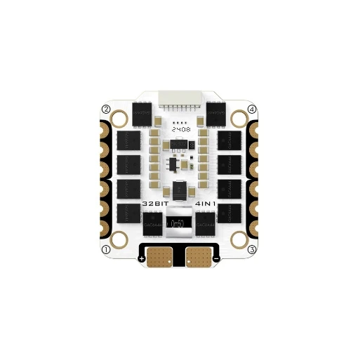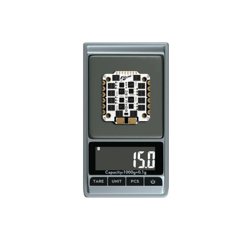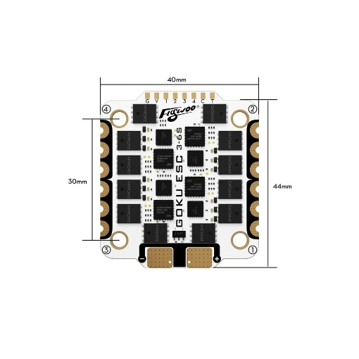L’ESC 4en1 Flywoo Goku G55M 55A est conçu pour booster les performances de votre setup FPV. Compact et léger (15 g), il s’installe facilement sur votre châssis grâce à ses trous de montage en 30 x 30 mm. Il délivre un courant continu de 55A et peut atteindre 60A en pic sur 10 s, idéal pour les vols intenses. Cet ESC est équipé du firmware AM32 et évolue sous les protocoles DShot150/300/600/1200, PWM, OneShot et MultiShot, pour une réactivité optimale et un contrôle précis des moteurs. De plus, il possède un taux de rafraîchissement PWM allant de 24 à 128 KHz et est livré avec un condensateur pour une meilleure durabilité. Enfin, l’ESC Goku G55M 55A s’alimente grâce à une batterie LiPo 3 à 6S (non fournie).