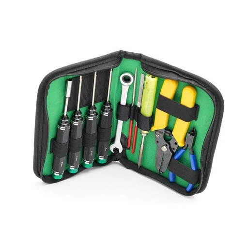 Optez pour ce Tool Case Ethix indispensable pour l’entretien de votre drone FPV. Ce kit, conçu par Mr. Steele, intègre 3 tournevis (M1.5, M2.0 et M2.5), 2 limes, une pince à dénuder, une pince coupante, une clé à écrou M5.5 et une clé à cliquet 8mm. Il est également possible d’y stocker votre fer à souder TS100 à la place de la pince à dénuder.