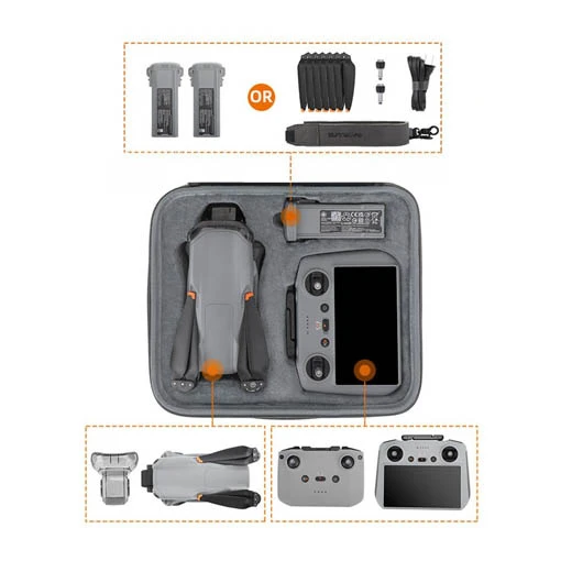 Cet étui de rangement SunnyLife vous permettra de ranger et transporter votre drone DJI Air 3 et DJI Air 3S et ses accessoires. Cet étui de transport protégera ainsi efficacement votre matériel lors de vos déplacements. Vous pourrez y stocker votre radiocommande DJI RC 2 ou RC-N2, une batterie supplémentaire ou autres accessoires tels que des hélices, câbles, strap, etc. Pour plus de sécurité, vous pourrez même fixer votre RC à l’aide de la sangle en velcro prévue à cet effet.