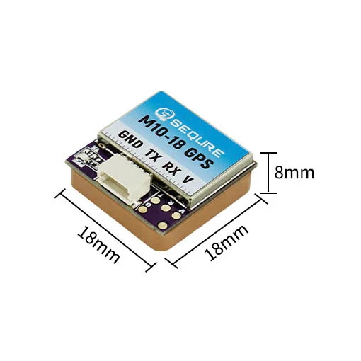 Le module GPS Sequre M10-18 assure un positionnement rapide pour une faible consommation d’énergie. Il intègre une puce Ublox 10ème génération avec une fréquence de sortie de 10 Hz, une antenne en céramique de haute qualité pour des performances élevées et une réception optimale des signaux satellites. Ce module GPS dispose de 72 canaux de recherche. Il bénéficie aussi d’un taux de baud de 115 200 bps et d’une vitesse de précision de 0,05 m/s. Facile à installer, le GPS M10-18 est de plus doté d’un connecteur, le rendant plug-ang-play. Vous n’aurez ainsi pas besoin d’effectuer de soudure pour le brancher sur votre quad FPV. De dimensions de 18 x 18 x 8 mm avec un poids de seulement 7,2 g, ce GPS Sequre est également très léger et compact.