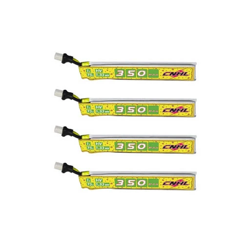 Ce kit CNHL est composé de cinq batteries LiHV de la série Pizza disposant d’un connecteur BT2.0. De dimensions de 6 x 11 x 67 mm avec un poids de 8 g, ces batteries CNHL possèdent une capacité de 350 mAh, une tension de 1S (3,8 V) et un taux de décharge de 75C. Elles seront parfaites pour vos prochains vols.