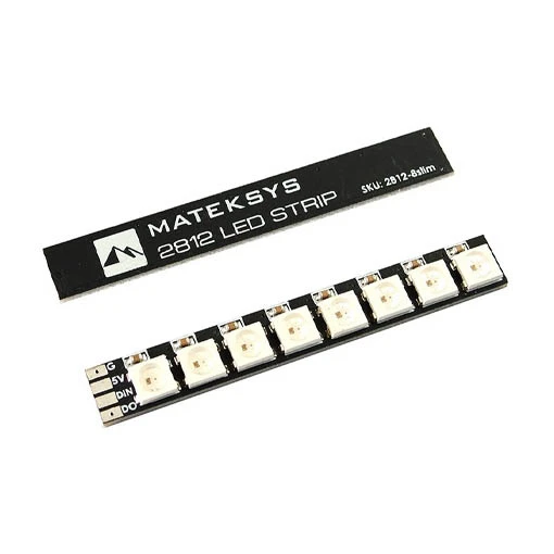 Ce kit Matek comporte 2 LED Strip slim 2812 idéales pour éclairer votre drone FPV. Il vous suffit de les installer sur les bras de votre quad et de les connecter au contrôleur de LED 2812 (non fourni). Vous pourrez les paramétrer depuis BetaFlight, INAV, ButterFlight, CleanFlight. De dimensions de 57 x 8 mm, ces plaques de 8 LEDS disposent de 7 couleurs : blanc, rouge, bleu, vert, jaune, magenta et cyan. Elles donneront du style à votre setup FPV !