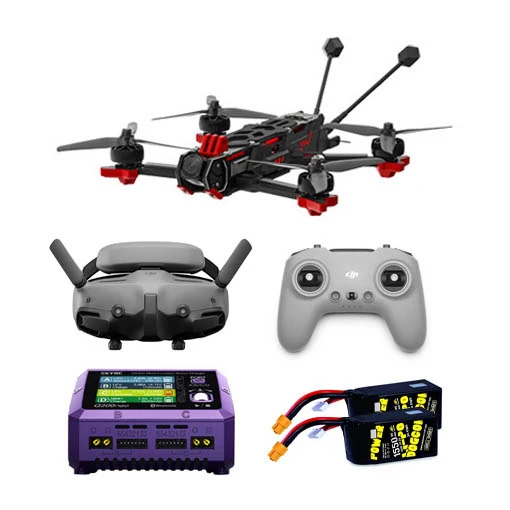 Ce pack RTF comporte un CineFlow 5, une radiocommande 3 DJI FPV, des DJI Goggles 3, 2 LiPo Dogcom 6S 1 550 mAh 150C UCELL Series et un chargeur SkyRC Q200 Neo Quattro AC/DC. Le CineFlow 5 assure de belles performances de vol avec une vitesse de pointe de 190 km/h et une résistance au vent de niveau 7. Ce quad dispose aussi du DJI O4 Air Unit Pro, offrant des vidéos en 4K 120 ips d’une grande fluidité. Vous pourrez également y ajouter une caméra d’action via son support GoPro et obtenir des prises de vue inédites. Ce drone bénéficie de plus d’un GPS, d’un filtre anti-étincelle et d’un système de ventilation optimal pour une meilleure durabilité.