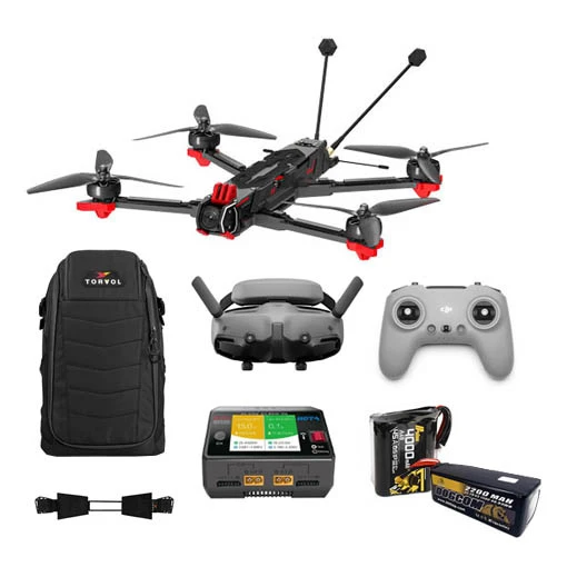 Ce pack RTF réunit un CineLR 7 DJI O4 Pro HD 6S avec GPS, une radiocommande 3 DJI PFV, des DJI Goggles 3, une Li-ion Auline 21700 A45 6S 4000 mAh 1C 45A, une LiPo Dogcom 6S 2200 mAh 150C, un chargeur HOTA D6 Pro AC/DC, un sac à dos Quad Pistop V2 Torvol avec une sangle Quad Strap. Idéal pour les cinematic et long range, le CineLR 7 dispose du DJI O4 Air Unit Pro, offrant un retour vidéo HD 100 ips jusqu’à 8 km (CE). Il permet de créer des vidéos en 4K 120 ips. Très maniable et performant, le CineLR 7 peut atteindre une vitesse allant jusqu’à 140 km/h et résiste à un vent de niveau 7. Il possède également un GPS et un système de dissipation thermique optimal.