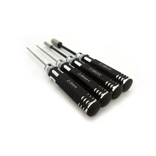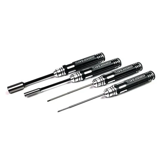 Le kit Team BlackSheep Sexy Driver comprend les outils essentiels pour vos modifications et réparations ! Il est composé d’un tournevis cruciforme M2.0, d’un tournevis à tête hexagonale M2.0 et deux à tête hexagonale intérieur femelle (M5 et M8). Ces outils ont reçu un traitement thermique pour plus de robustesse.