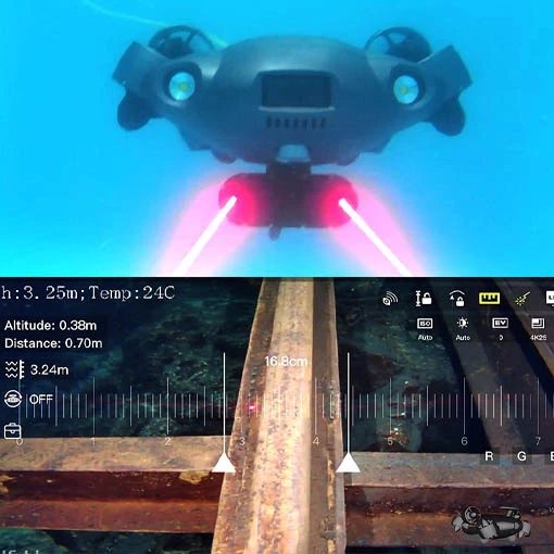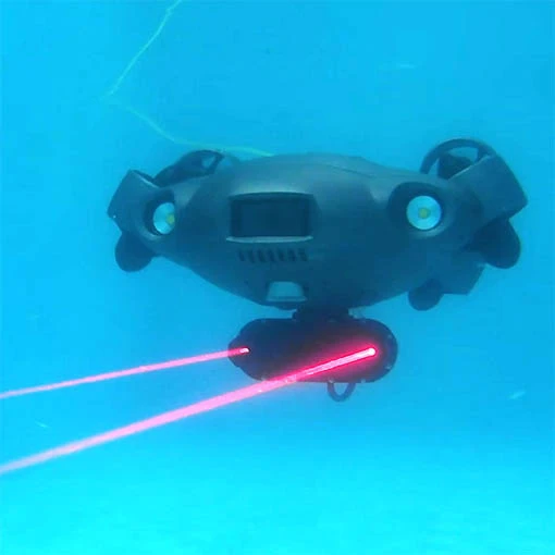 Ce mesureur laser AR Qysea vous permettra de mesure la taille des objets lors de vos expéditions sous-marines avec votre ROV. Conçu pour les drones sous-marins Fifish V6 Expert et Pro V6 Plus, ou Fifish E-GO Serie (au choix), ce mesureur laser à réalité augmentée assure avec grande précision les dimensions des objets souhaités. Idéal pour les opérations de recherche et d’exploration, ce laser permettra d’éviter des prises de risques et réduira les coûts de vos opérations sous-marines. Avec l’application Fifish, visualisez les objets et obtenez en temps réel leurs dimensions.