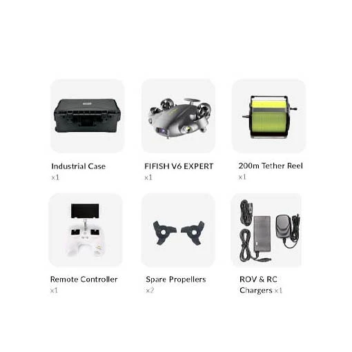 Livré avec la valise Industry case, elle permettra de transporter le drone et les accessoires. Tous vos médias seront enregistrés sur une carte SD de 128Go. Ce ROV est conçu pour les professionnels souhaitant effectuer des missions de contrôle ou de surveillance comme les secouristes, les inspections de structures, les ingénieurs… Il sera aussi indispensable pour l’aquaculture, et pour la science sous-marine. Les nombreux accessoires disponibles permettent de mesurer plusieurs facteurs selon vos missions d’observation, de mesure, de navigation, de manipulation, ou encore pour prélever des échantillons.