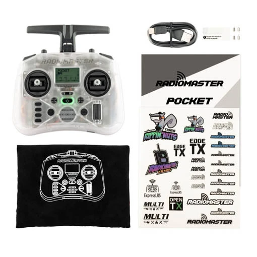 La radiocommande RadioMaster Pocket ELRS vous garantira une expérience de pilotage inégalée. Légère et puissante, elle est équipée de gimbals à effet hall, paramétrés en mode 2 pour une grande précision de vol. De dimensions de 156,6 x 73,1 x 154,8 mm une fois dépliée avec un poids de 288 g, cette radio pourra vous suivre partout. Facile à transporter, elle dispose en effet de joysticks détachables et d’une antenne pliable. Elle est dotée du protocole de transmission ExpressLRS 2.4 GHz assurant de belles performances. Vous pourrez de plus l’associer à un récepteur Nano Crossfire via sa baie Nano JR intégrée.