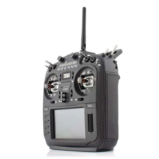 La version Max de la radio TX16S Mark II AG01 offre des caractéristiques similaires à la TX16S MarkII AG01. Les composants électroniques internes offrent d’excellentes performances avec une incroyable précision grâce aux gimbals AG01 usinés CNC que vous pourrez ajuster sans ouvrir la radiocommande. Ajustez la position de vos mains avec les poignées incluses. Vous retrouverez également l’écran tactile TFT couleurs de 4,3″ de 480x272p, ainsi que sa protection d’écran. Adaptez l’émetteur en Crossfire ou ExpressLRS si vous possédez la version 4en1 grâce au module arrière baie JR de la radiocommande.