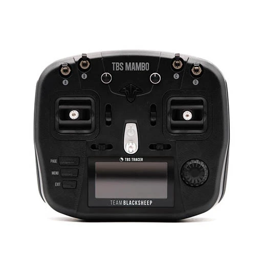 La Mambo est pourvue d’une antenne intégrée et d’une sortie audio vocale avec prise audio et alerte de vibration haptique. La radiocommande a une prise en main très confortable grâce à ses bords en caoutchouc adhérents. Elle possède 4 interrupteurs 3 positions, 1 interrupteur 2 positions, 1 bouton momentané et 2 potentiomètres avec encoche centrale. Son écran OLED haute résolution (128 x 64) est rétroéclairé pour une meilleure expérience de vol.