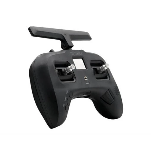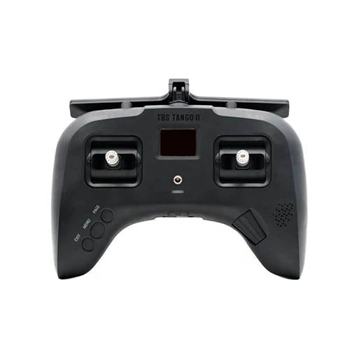 La Tango 2 est la radiocommande la plus petite du marché. Pas d’inquiétude concernant les gimbals, elles sont à effet hall de taille standard (vis M3). La radio est très confortable au niveau de la prise en main grâce à ses poignées en caoutchouc. Ses interrupteurs 3 et 2 positions sont incassables et son antenne est pivotante et peut faire office de béquille au repos. L’appareil possède un écran OLED noir et blanc haute résolution (128 x 96) avec rétroéclairage.