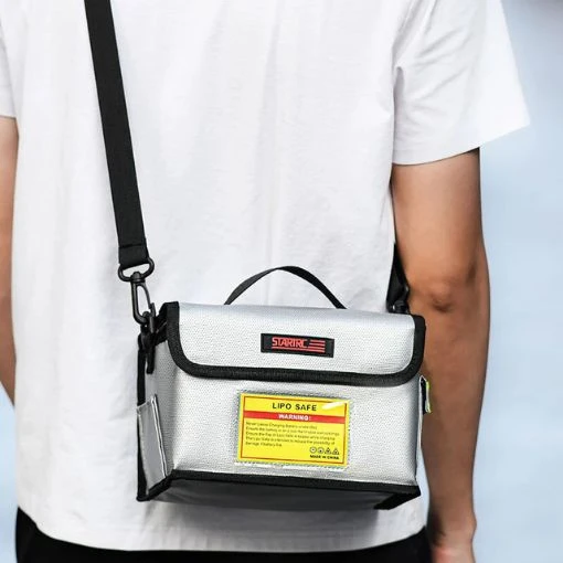 Pour plus de commodité, le sac est équipé d’une bandoulière, offrant la possibilité de le porter à la main ou sur l’épaule. De plus, il dispose d’une ouverture latérale laissant passer les câbles de charge, pour recharger les batteries tout en les maintenant en sécurité à l’intérieur du sac. Transportez vos batteries partout avec vous grâce à ce sac de sécurité STARTRC !