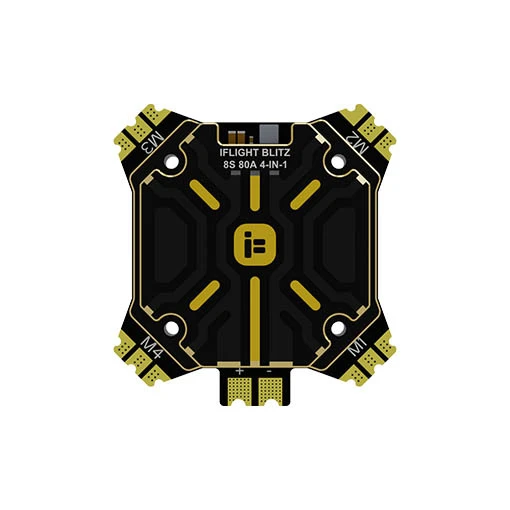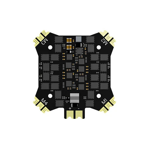 Le contrôleur de vol Plug and Play est doté d’un processeur STM32 F722, d’un gyroscope BMI270, d’un baromètre DPS310, d’une Blackbox de 512Mb et de 4 UARTs. Cette FC de 14.g environ est compatible avec DJI O4 & O3 Air Unit et ses trous de montage sont en 30.5 × 30.5 mm. L’ESC de ce kit dispose d’un courant continu de 80 A (pic de 100 A). Il intègre un MCU G071, fonctionne sous le firmware BLHeli32 et pèse environ 65 g. Les deux pièces s’alimentent avec une LiPo 2-8S (non fournie).