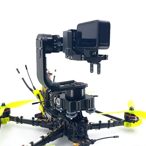 Le stabilisateur Namaste 3 axes de Gohstand Designs a été conçu pour les drones FPV de 7 pouces et plus. Avec un pilotage dédié uniquement au contrôle double opérateur du stabilisateur, il vous permettra de créer des prises de vue aériennes d’une grande fluidité. Vous pourrez le fixer au-dessus ou en-dessous de votre drone. Compatible avec les caméras d’action type GoPro, ce stabilisateur 3 axes en CNC aluminium offre un rendu cinématographique incomparable. Grâce à votre radiocommande connectée au récepteur TBS Crossfire Nano, vous pourrez contrôler le stabilisateur pour obtenir l’angle de vue souhaité. Cet appareil nécessite une caméra FPV et un VTx (non fournis) pour assurer un retour vidéo. Grâce à la caméra FPV située dans le même axe que la caméra d’action, vous pourrez cadrer correctement vos photos et vidéos. Vous pourrez facilement le brancher au VTx que vous ajouterez à votre LiPo (non incluse).