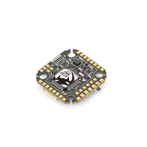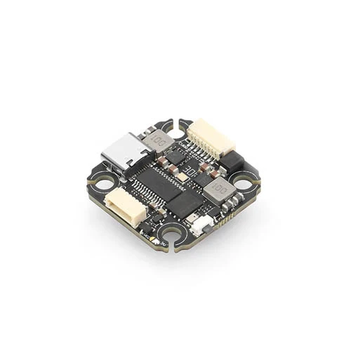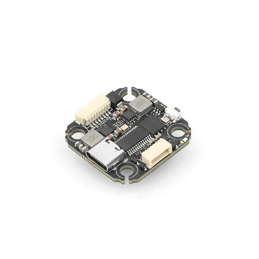 L’ESC F40 128K également au format mini supporte un courant continu de 40A avec un pic de courant de 45A pendant 10 secondes environ. Il évolue sous le firmware BLHeli_32 et sous les protocoles Dshot 300/600/1200. La stack fonctionne avec une batterie LiPo 6S (non fournie) et dispose de trous de montage en 20 x 20 mm.