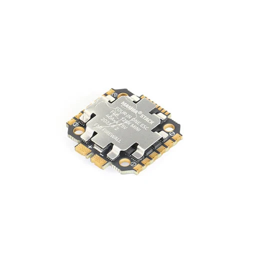 Cette stack Mamba Diatone est compacte et légère. Elle se compose d’un contrôleur de vol Mamba MK4 F722 Mini et d’un ESC F40 128K Mini. La carte de vol au format mini intègre un processeur STM32F722, un gyroscope ICM42688P, 6 UARTs, une blackbox de 16M, 3 BECs (3.3V/0.5A, 5V/2.5A et 9V 2A) et un baromètre. Ses larges pads offrent une facilité de soudure sans égale.